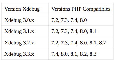 Cependant, pour utiliser la version 3 de Xdebug, vous devez disposer d’une version minimale de PHP.